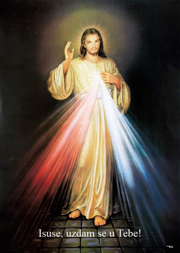 Bože, Milosrdni Oče, koji si objavio svoju ljubav u svome Sinu Isusu Kristu, a na nas si je izlio u Duhu Svetom, Tješitelju, danas ti povjeravamo sudbine svijeta i svakoga čovjeka. Sagni se nad nas grešnike, ozdravi našu slabost, porazi svako zlo, učini da svi stanovnici zemlje dožive tvoje milosrđe da bi u tebi, Bogu Jedinom i Trojstvenom, uvijek nalazili izvor nade. Vječni Oče, po pregorkoj muci i uskrsnuću svoga Sina, budi milosrdan nama i cijelomu svijetu. Amen.